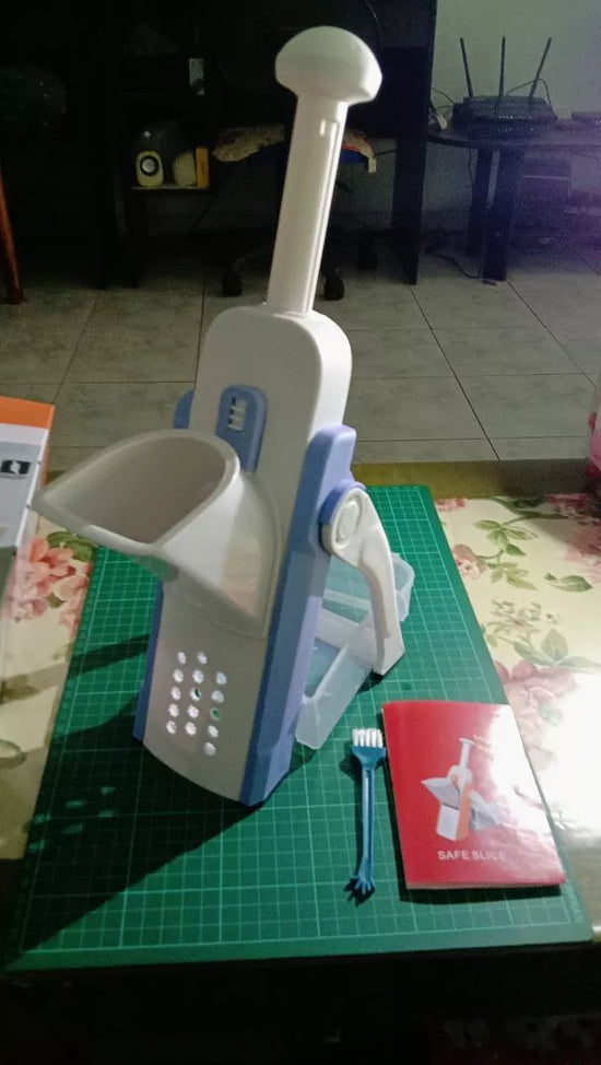 Měl jsem klasickou mandolínu, ale tento model je mnohem bezpečnější a přesnější. Nastavení tloušťky je plynulé a ostří je opravdu profesionální. Vertikální design je skutečným plusem.
