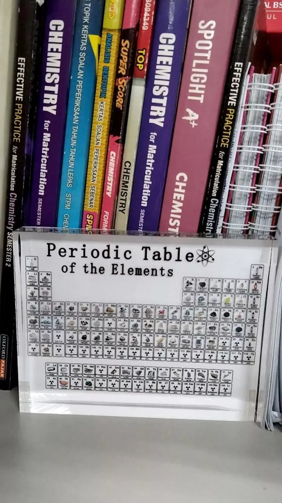 בלוק אקריליק אלגנטי עם דוגמאות אמיתיות, מושלם ללמידת כימיה תוך כדי קישוט החלל שלכם. גם חינוכי וגם דקורטיבי, הוא מרתק את הקטנים והגדולים.