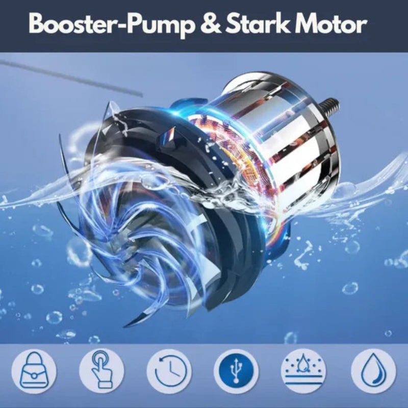 Ez a hordozható zuhany újratölthető akkumulátorral van felszerelve, és működhet áram nélkül, miután feltöltötték.
