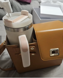 Oui, le porte-gobelet intégré est élastique et s’adapte à la plupart des formats standards (bouteilles d’eau, mugs isothermes, gobelets de café à emporter).